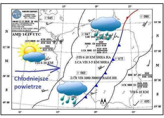 Środa - zachmurzenie umiarkowane/duże zmienne. Mogą pojawić się słabe, przelotne opady deszczu. Po przejściu frontu się ochłodzi, temperatura maksymalna do 6-8 °C. Wiatr umiarkowany, do 30km/h.