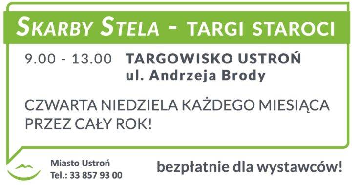 Miasto Ustroń zaprasza na Targi Staroci, które w każdą czwartą niedzielę miesiąca, w godzinach od 9 do 13, odbywają się na Targowisku Miejskim. Wystawcy nie ponoszą żadnych opłat za wystawiania swoich staroci i antyków.