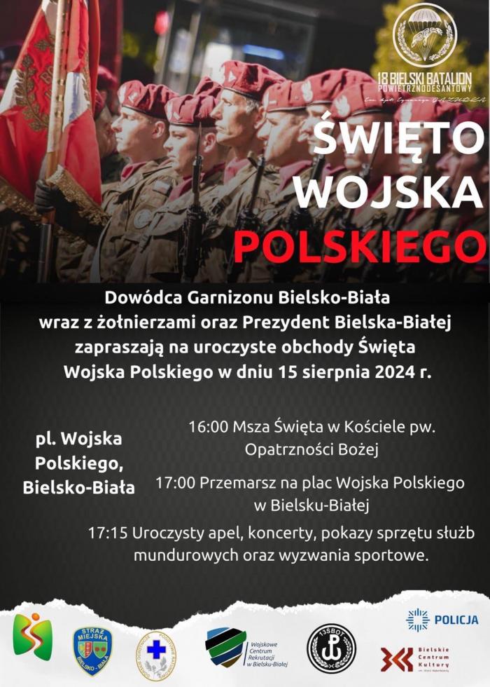 15 sierpnia, w Narodowe Święto Wojska Polskiego, mieszkańcy Bielska-Białej będą mieli okazję uczestniczyć w wojskowych uroczystościach. Na Placu Wojska Polskiego odbędzie się piknik wojskowy, którego współorganizatorami są dowództwo Garnizonu Bielsko-Biała oraz 18 Batalion Powietrznodesantowy.