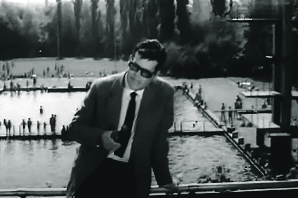 Zbigniew Cybulski na tle bielskiej Panoramy, kadr z filmu „Jutro Meksyk”, 1966 rok.