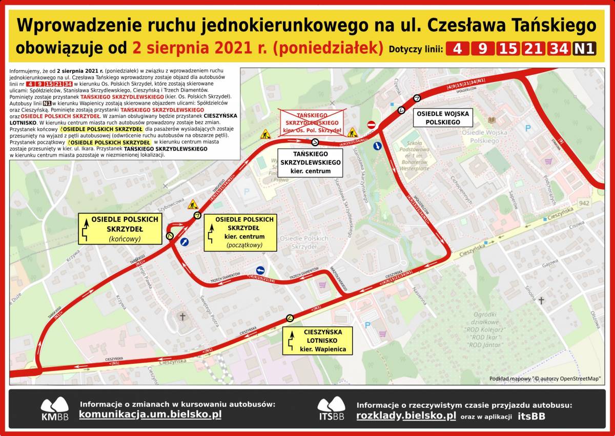 Zmiany na trasach autobusów nr 4, 9, 15, 21, 34 i N1